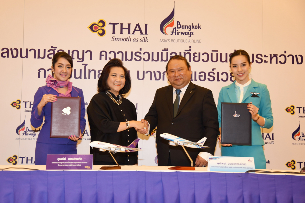 The codeshare deal comprises domestic flights operated by Bangkok Airways between Bangkok and Samui, Chiang Mai, Chiang Rai, Phuket, Krabi, Lampang, Sukhothai and Trat, as well as the Chiang Mai-Mae Hong Son and Samui-Phuket routes.