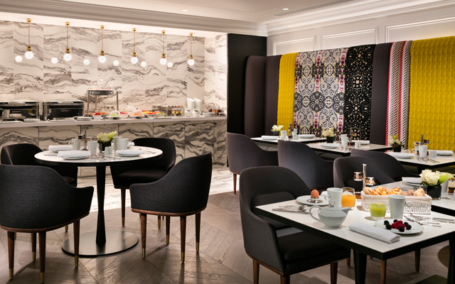 The breakfast salon in the basement is an energetic space designed by French fashion designer Christian Lacroix, who is known for his exuberant ideas. Here, sustenance comes in the form of fresh juices, warm madeleines and croissants, cheese selection, wholesome grains and yogurt, and more.