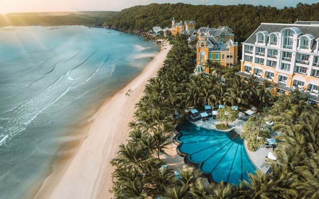 Located on Khem Beach, one of Phu Quoc’s most secluded shorelines, the resort stands out for its distinctive design inspired by a 19th-century university, conceived by architect Bill Bensley.