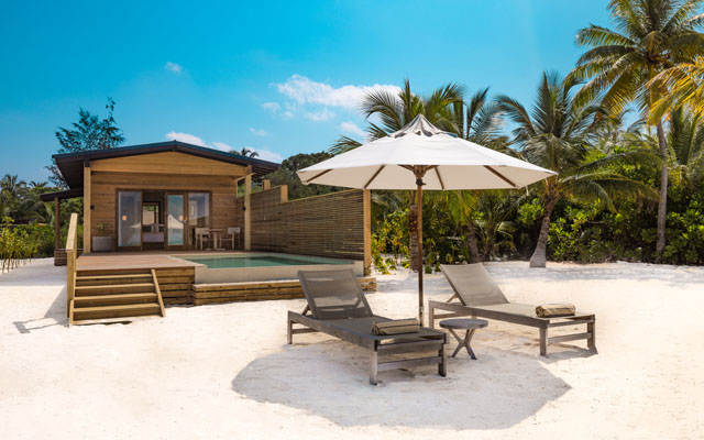 Nala Maldives by Jawakara Islands occupies a private 10-hectare island in Lhaviyani Atoll, a 35-minute seaplane journey from Velana International Airport. The adults-focused resort has 80 one-bedroom villas across beach and overwater settings, with selected categories including private pools or lagoon access.