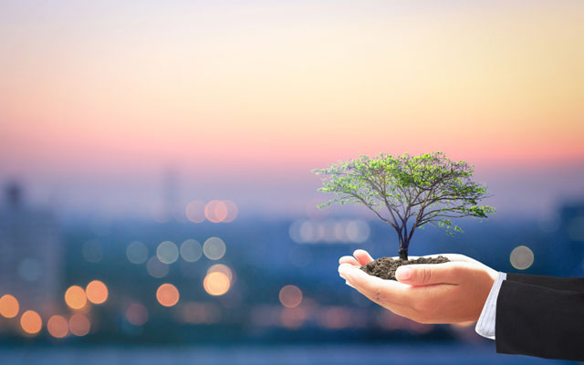 Businessman-hands-holding-big-tree-over-blurred-city-background